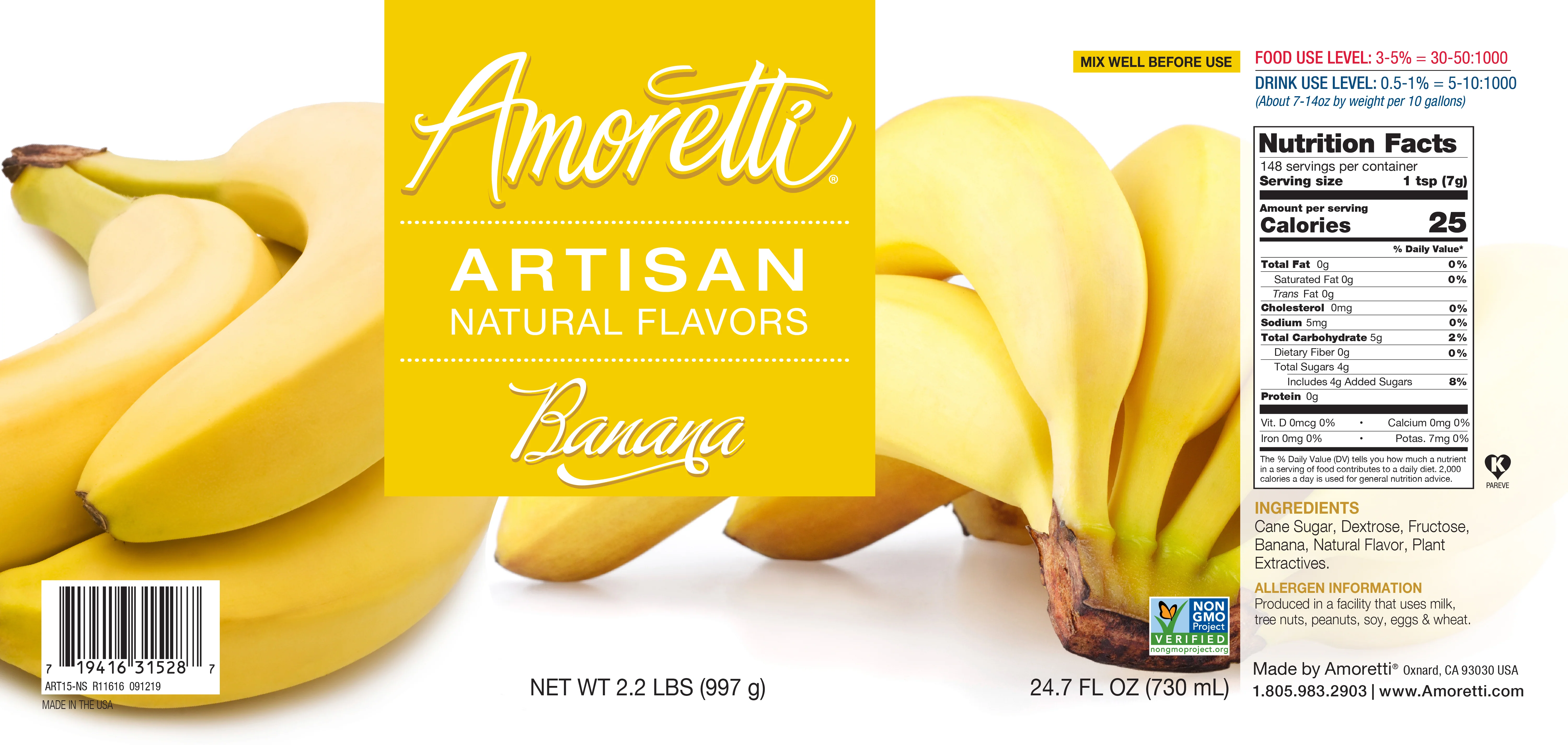 Amorettiâs Natural Banana Artisan Natural Flavor Paste captures the flavor of ripe, vibrant bananas year-round. Showcasing a bright sunny color and irresistible sweetness â add a delicious spin to all your gourmet creations. Experience our perfect craftsmanship in every step from refined flavor, elegant aroma, and smooth texture. Escape to paradise â with Amoretti!