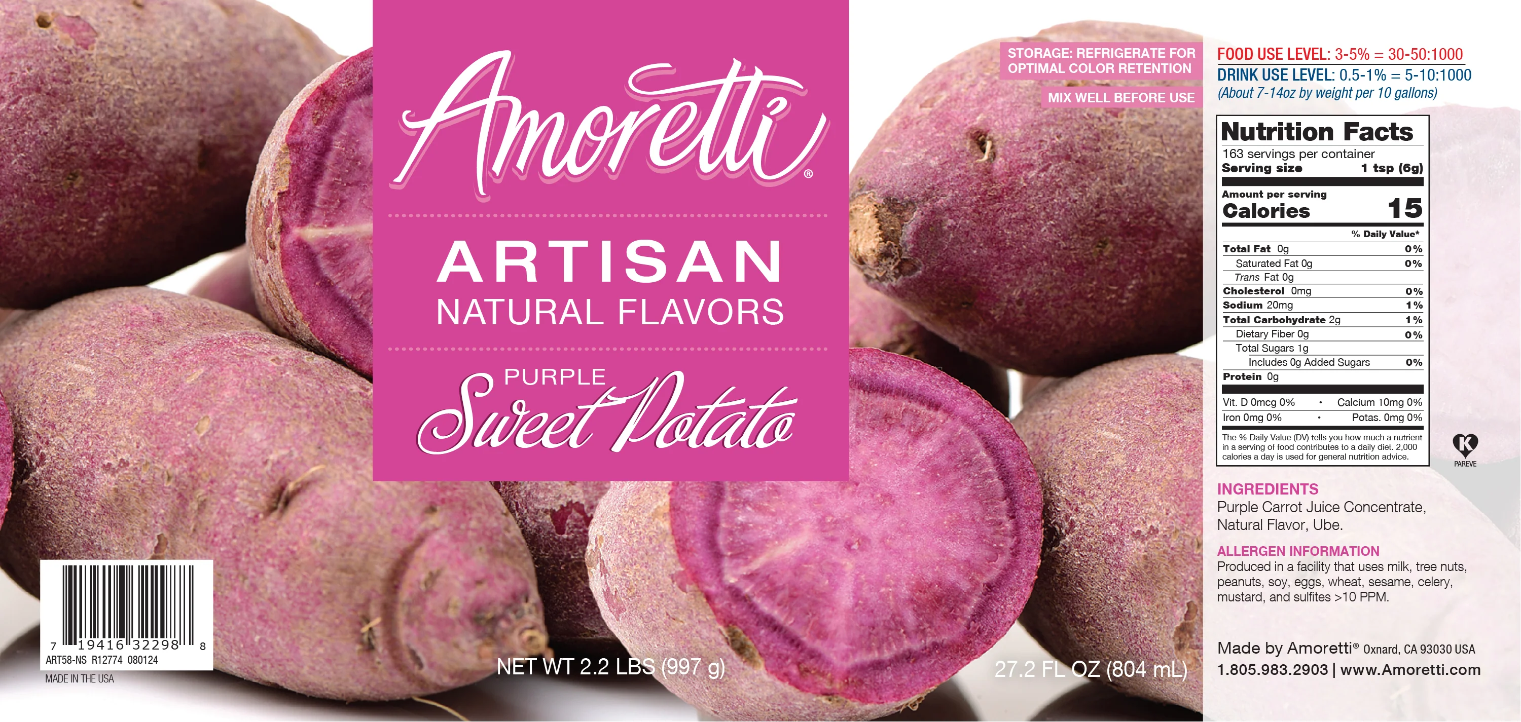 *All Amoretti Artisan Natural Flavor Pastes remain shelf-stable even after opening. For optimal color retention of reds, please refrigerate. Mix well before use.
